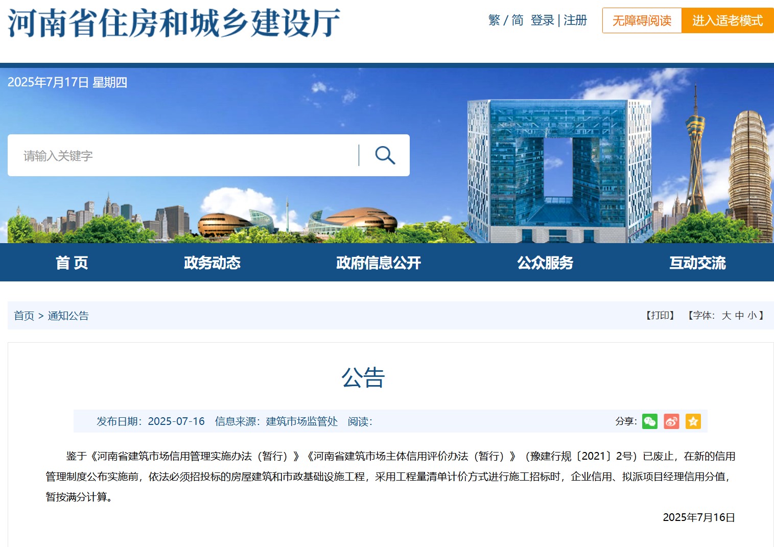 河南省住建廳發(fā)布關(guān)于房建、市政施工項(xiàng)目招標(biāo)時(shí)信用分計(jì)算的公告
